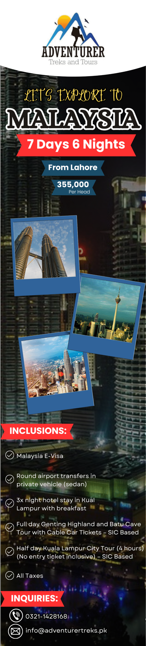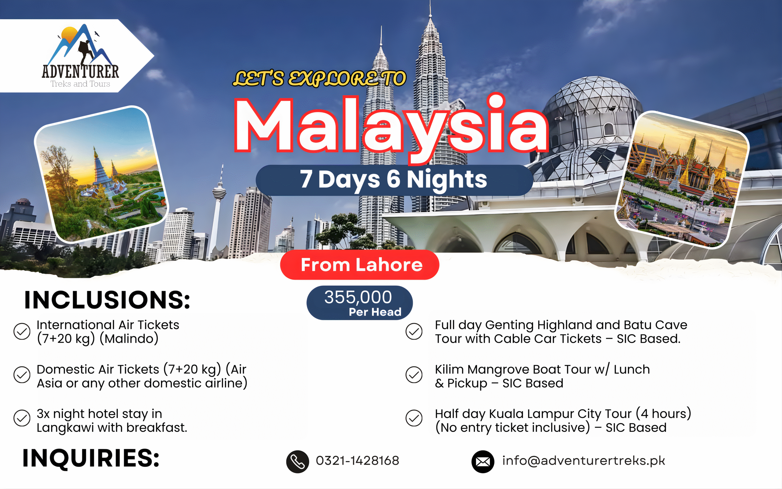 This 7 Days & 6 Nights private trip to Kuala Lumpur, Genting Highlands, and Langkawi offers the perfect balance of urban excitement, natural beauty, and tropical relaxation. Begin in Kuala Lumpur, Malaysia’s dynamic capital, where modern skyscrapers, colonial charm, and cultural landmarks create a fascinating cityscape. Explore vibrant markets, savor local cuisine, and visit architectural icons like the Petronas Twin Towers. Then, escape to the refreshing mountain air of Genting Highlands, where you’ll enjoy thrilling theme parks, scenic cable car rides, and breathtaking views from the highlands. Finally, unwind in Langkawi, a tropical paradise known for its crystal-clear waters, sandy beaches, and laid-back atmosphere. Spend your days swimming, island hopping, and watching golden sunsets over the Andaman Sea. This private tour perfectly captures Malaysia’s diversity — from bustling city streets to cool mountain retreats and serene island escapes — creating an unforgettable travel experience.