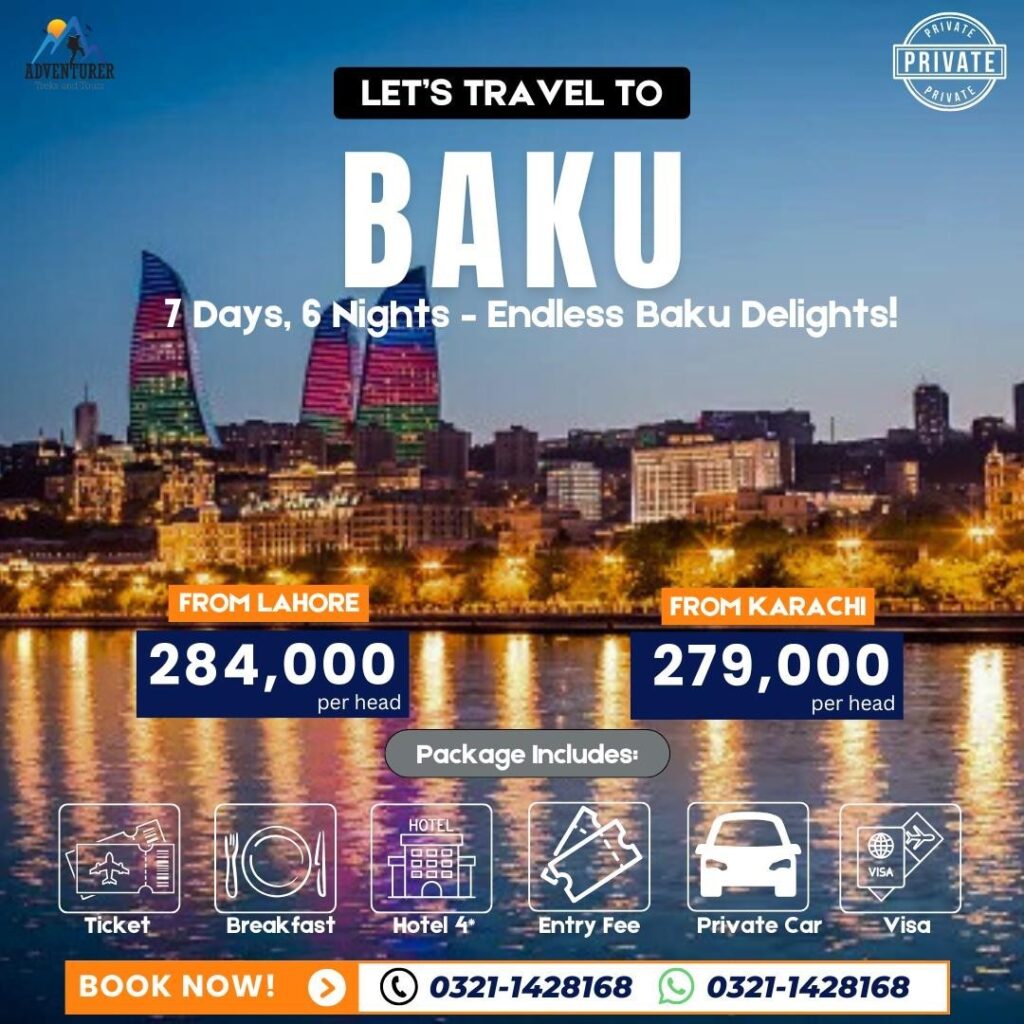 A 7-day, 6-night private trip for 2 pax to Baku, Azerbaijan, combining history, culture, and modern attractions. Explore iconic landmarks, vibrant cityscapes, and unique experiences for a memorable getaway.