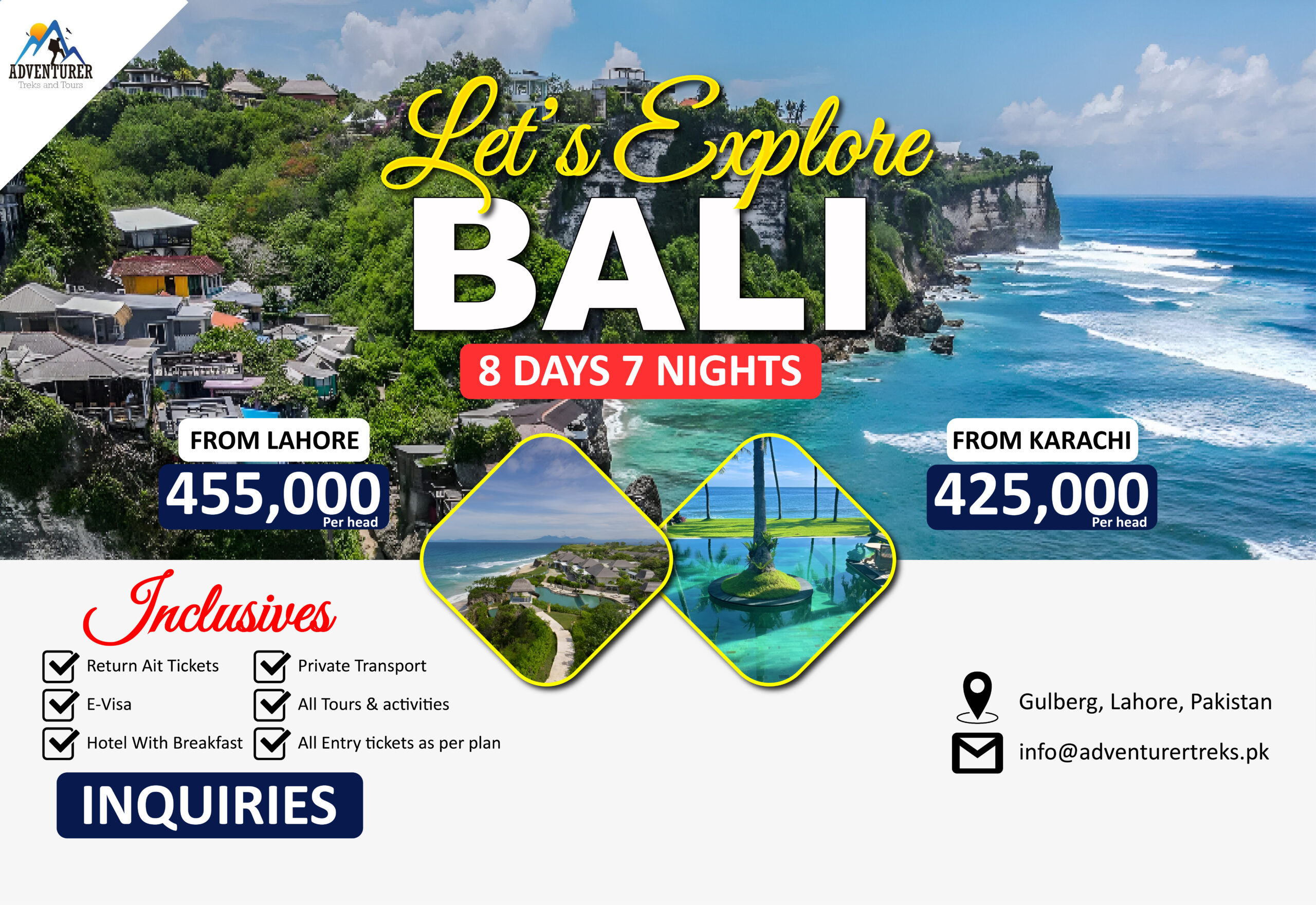 Our 8 Days 7 Nights Bali tour is crafted with care to ensure an unforgettable holiday experience. Unlike ordinary travel packages, we provide everything you need from start to finish. You will enjoy return air tickets, convenient visa services, private transportation, luxury hotel stays with breakfast, guided tours, and all entry tickets included in your plan. This means you don’t have to worry about hidden costs or unplanned hassles during your trip. Our team ensures a smooth journey where you can focus only on enjoying your vacation. Whether you are coming from Lahore or Karachi, our special packages guarantee comfort, convenience, and amazing value. With a balance of relaxation, adventure, and cultural immersion, this Bali tour is the perfect choice for anyone wanting to explore one of the world’s most beautiful destinations in complete peace of mind.